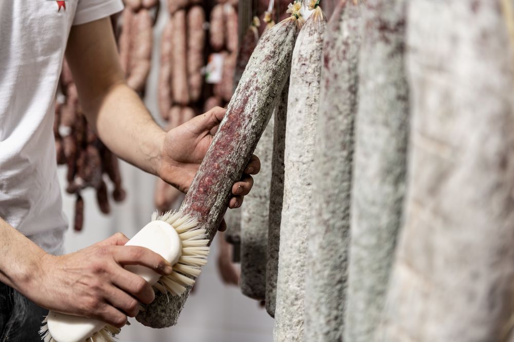 È un dettaglio che differenzia i nostri salumi perchè l’acqua presente all’ interno viene sottratta lentamente. Questo ci permette di effettuare delle lunghe stagionature.